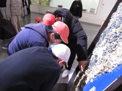 郷土博物館では、日立の歴史や戦災についての展示を見学したり、日立市で発掘された土器さわり体験をしたりしました。慎重に土器をさわる姿や、展示を見ながら見学シートに熱心に書き込む姿が見られました。