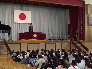 次に始業式。高学年を中心に、立派な態度で式に臨みました。