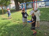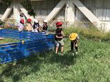 秋晴れの中、虫かごを持って元気よく外へ!!