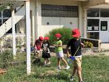 花壇や草の中をよく探し、バッタやチョウ、アリなどの生物を見つけて、つかまえることができました。