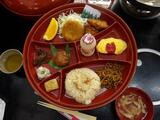 朝食は、アルファー米のたけのこ ご飯と早朝からオッズがつくった豚汁です。
